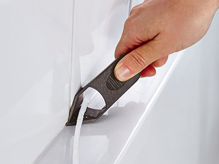 Часто люди відмовляються від використання лопатки і розгладжують силікон пальцями, змоченими водою. Проте цей застарілий та неефективний метод не завжди дозволяє створити рівний силіконовий шов. У шві можуть залишитися порожнини, і він може не повністю заповнити отвір. Також важливо зауважити, що чим тонший шар силікону, тим швидше він зношується і може пропускати воду. Тому ми рекомендуємо уникати цього методу, оскільки через рік ви, можливо, знову будете змушені замінювати силікон через просічку води та утворення грибка.